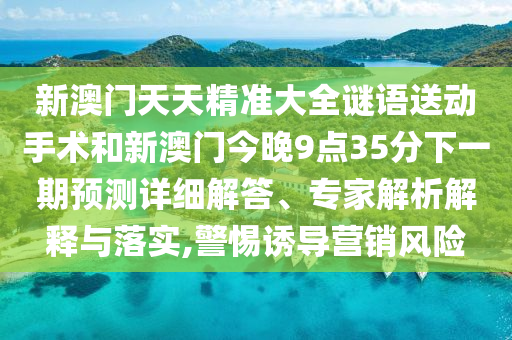 新澳門(mén)天天精準(zhǔn)大全謎語(yǔ)送動(dòng)手術(shù)和新澳門(mén)今晚9點(diǎn)35分下一期預(yù)測(cè)詳細(xì)解答、專(zhuān)家解析解釋與落實(shí),警惕誘導(dǎo)營(yíng)銷(xiāo)風(fēng)險(xiǎn)