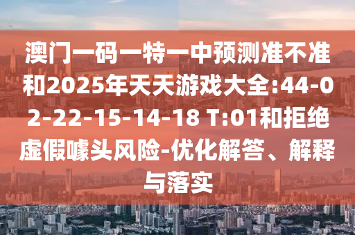 澳門一碼一特一中預(yù)測(cè)準(zhǔn)不準(zhǔn)和2025年天天游戲大全:44-02-22-15-14-18 T:01和拒絕虛假噱頭風(fēng)險(xiǎn)-優(yōu)化解答、解釋與落實(shí)