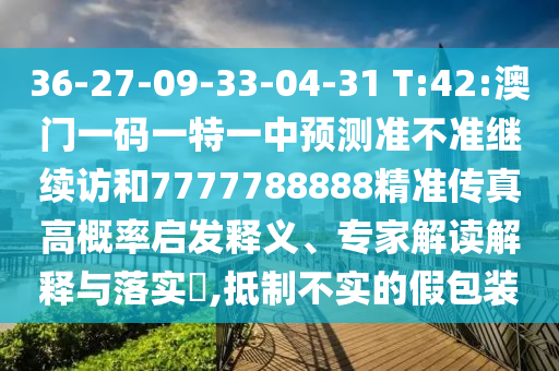 36-27-09-33-04-31 T:42:澳門一碼一特一中預測準不準繼續(xù)訪和7777788888精準傳真高概率啟發(fā)釋義、專家解讀解釋與落實?,抵制不實的假包裝