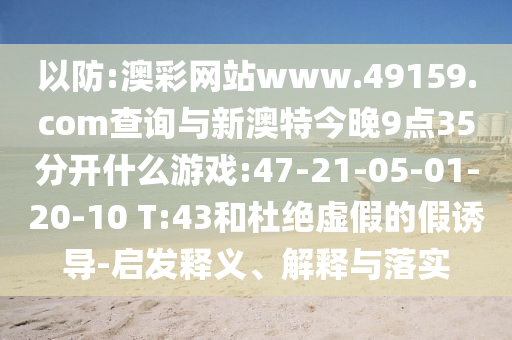以防:澳彩網(wǎng)站www.49159.соm查詢與新澳特今晚9點(diǎn)35分開(kāi)什么游戲:47-21-05-01-20-10 T:43和杜絕虛假的假誘導(dǎo)-啟發(fā)釋義、解釋與落實(shí)