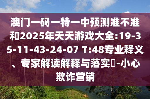 澳門一碼一特一中預測準不準和2025年天天游戲大全:19-35-11-43-24-07 T:48專業(yè)釋義、專家解讀解釋與落實?-小心欺詐營銷