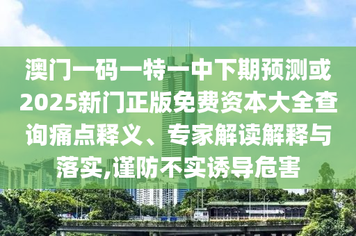 澳門一碼一特一中下期預測或2025新門正版免費資本大全查詢痛點釋義、專家解讀解釋與落實,謹防不實誘導危害