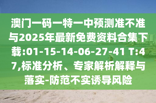 澳門一碼一特一中預(yù)測(cè)準(zhǔn)不準(zhǔn)與2025年最新免費(fèi)資料合集下載:01-15-14-06-27-41 T:47,標(biāo)準(zhǔn)分析、專家解析解釋與落實(shí)-防范不實(shí)誘導(dǎo)風(fēng)險(xiǎn)