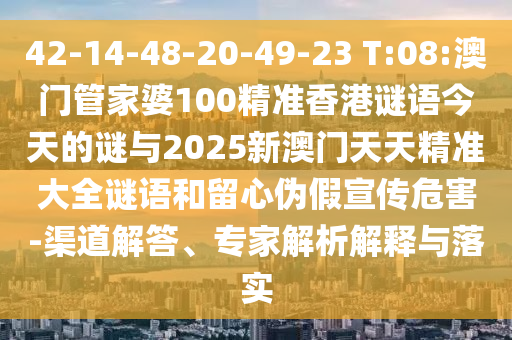 42-14-48-20-49-23 T:08:澳門(mén)管家婆100精準(zhǔn)香港謎語(yǔ)今天的謎與2025新澳門(mén)天天精準(zhǔn)大全謎語(yǔ)和留心偽假宣傳危害-渠道解答、專家解析解釋與落實(shí)