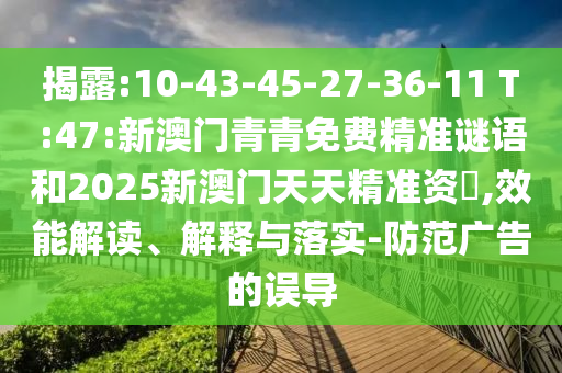 揭露:10-43-45-27-36-11 T:47:新澳門青青免費精準謎語和2025新澳門天天精準資枓,效能解讀、解釋與落實-防范廣告的誤導