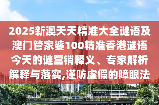 2025新澳天天精準大全謎語及澳門管家婆100精準香港謎語今天的謎營銷釋義、專家解析解釋與落實,謹防虛假的障眼法