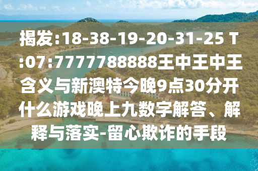 18-38-19-20-31-25 T:07:7777788888 王中王中王含義”與游戲開獎的解讀、解釋與落實,以及警惕虛假宣傳和欺詐手段