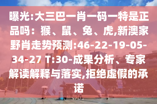 曝光:大三巴一肖一碼一特是正品嗎:猴、鼠、兔、虎,新澳家野肖走勢(shì)預(yù)測(cè):46-22-19-05-34-27 T:30-成果分析、專(zhuān)家解讀解釋與落實(shí),拒絕虛假的承諾