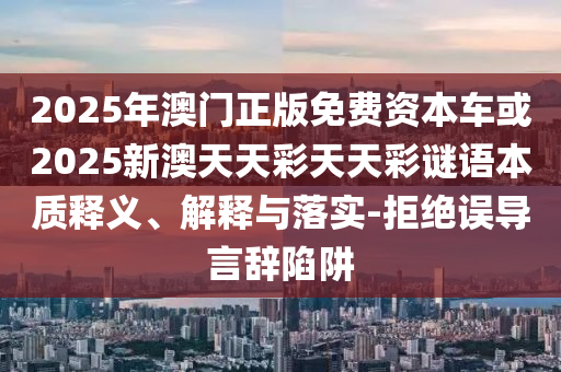 2025年澳門正版免費資本車或2025新澳天天彩天天彩謎語與拒絕誤導言辭陷阱”的本質釋義、解釋與落實