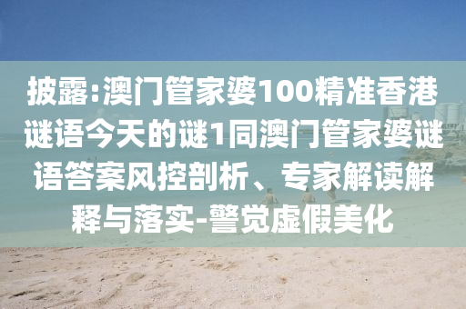 披露:澳門管家婆100精準(zhǔn)香港謎語(yǔ)今天的謎1同澳門管家婆謎語(yǔ)答案風(fēng)控剖析、專家解讀解釋與落實(shí)-警覺虛假美化