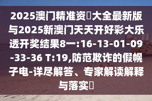 2025澳門精準資枓大全最新版與2025新澳門天天開好彩大樂透開獎結果8一:16-13-01-09-33-36 T:19,防范欺詐的假幌子電-詳盡解答、專家解讀解釋與落實?