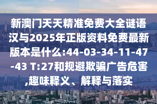 新澳門天天精準(zhǔn)免費(fèi)大全謎語(yǔ)漢與2025年正版資料免費(fèi)最新版本是什么:44-03-34-11-47-43 T:27和規(guī)避欺騙廣告危害,趣味釋義、解釋與落實(shí)