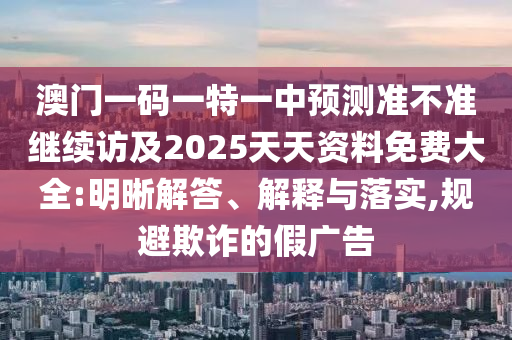澳門一碼一特一中預測準不準繼續(xù)訪及2025天天資料免費大全:明晰解答、解釋與落實,規(guī)避欺詐的假廣告