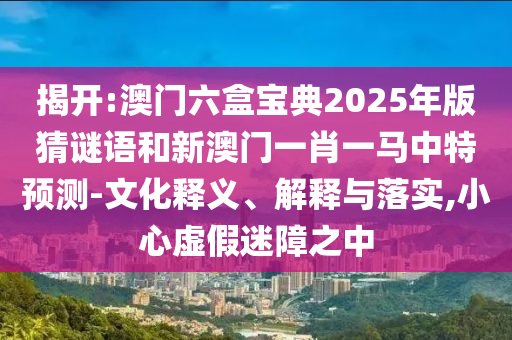 揭開(kāi)“澳門(mén)六盒寶典2025年版猜謎語(yǔ)”與“新澳門(mén)一肖一馬中特預(yù)測(cè)”背后的文化釋義、解釋與落實(shí)——警惕虛假迷障