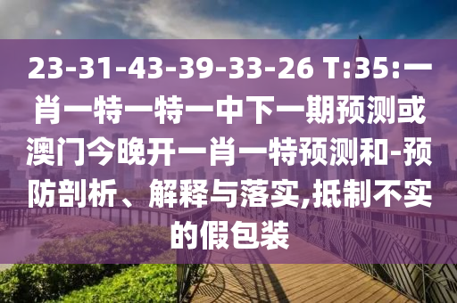 23-31-43-39-33-26 T:35:一肖一特一特一中下一期預(yù)測或澳門今晚開一肖一特預(yù)測和-預(yù)防剖析、解釋與落實,抵制不實的假包裝