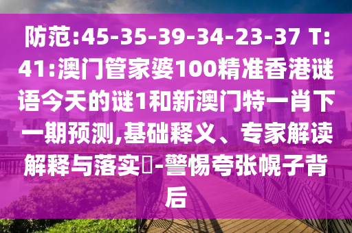 防范:45-35-39-34-23-37 T:41:澳門管家婆100精準香港謎語今天的謎1和新澳門特一肖下一期預(yù)測,基礎(chǔ)釋義、專家解讀解釋與落實?-警惕夸張幌子背后