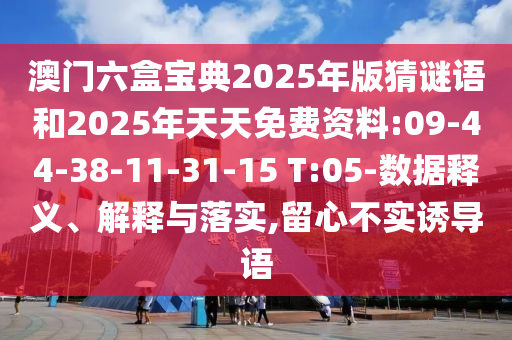 關(guān)于澳門六盒寶典2025年版猜謎語(yǔ)和所謂的2025年天天免費(fèi)資料:09-44-38-11-31-15 T:05的數(shù)據(jù)釋義、解釋與落實(shí),我們需要保持謹(jǐn)慎和理性的態(tài)度,在此,我們將全面釋義、解釋這些關(guān)鍵詞,并特別提醒公眾警惕虛假宣傳和不實(shí)誘導(dǎo)。