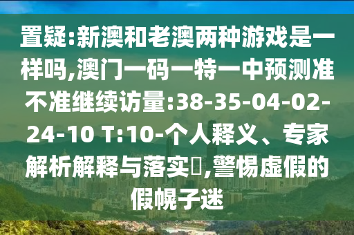 置疑:新澳和老澳兩種游戲是一樣嗎,澳門一碼一特一中預(yù)測準(zhǔn)不準(zhǔn)繼續(xù)訪量:38-35-04-02-24-10 T:10-個人釋義、專家解析解釋與落實?,警惕虛假的假幌子迷