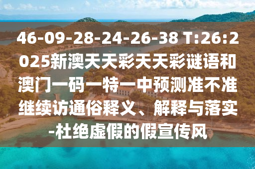 46-09-28-24-26-38 T:26:2025新澳天天彩天天彩謎語”和“澳門一碼一特一中預(yù)測準不準繼續(xù)訪,杜絕虛假的假宣傳風”的解釋與落實