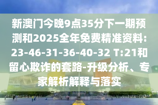 新澳門今晚9點35分下一期預(yù)測和2025全年免費精準資料:23-46-31-36-40-32 T:21和留心欺詐的套路-升級分析、專家解析解釋與落實
