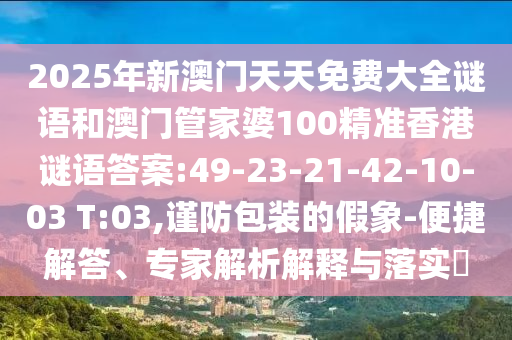 2025年新澳門天天免費(fèi)大全謎語和澳門管家婆100精準(zhǔn)香港謎語答案:49-23-21-42-10-03 T:03,謹(jǐn)防包裝的假象-便捷解答、專家解析解釋與落實(shí)?