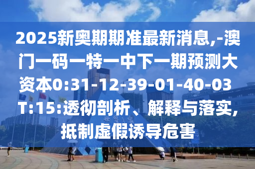 2025新奧期期準(zhǔn)最新消息,-澳門一碼一特一中下一期預(yù)測大資本0:31-12-39-01-40-03 T:15:透徹剖析、解釋與落實,抵制虛假誘導(dǎo)危害