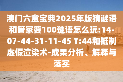 澳門六盒寶典2025年版猜謎語(yǔ)和管家婆100謎語(yǔ)怎么玩:14-07-44-31-11-45 T:44和抵制虛假渲染術(shù)-成果分析、解釋與落實(shí)
