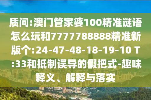 關(guān)于澳門管家婆100精準(zhǔn)謎語(yǔ)及抵制誤導(dǎo)假把式的全面解析與落實(shí)策略