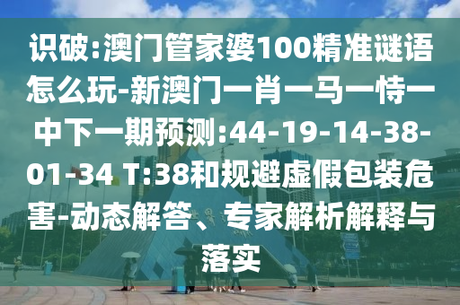 識(shí)破:澳門管家婆100精準(zhǔn)謎語怎么玩-新澳門一肖一馬一恃一中下一期預(yù)測(cè):44-19-14-38-01-34 T:38和規(guī)避虛假包裝危害-動(dòng)態(tài)解答、專家解析解釋與落實(shí)