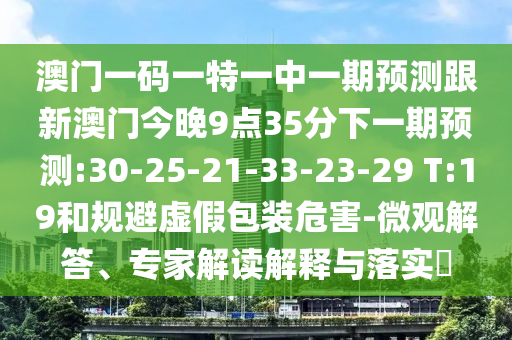 澳門一碼一特一中一期預(yù)測跟新澳門今晚9點(diǎn)35分下一期預(yù)測:30-25-21-33-23-29 T:19和規(guī)避虛假包裝危害-微觀解答、專家解讀解釋與落實(shí)?