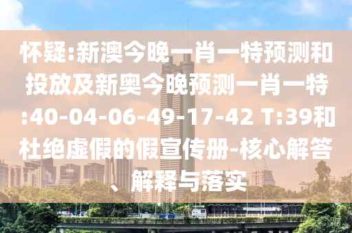 懷疑:新澳今晚一肖一特預(yù)測(cè)和投放及新奧今晚預(yù)測(cè)一肖一特:40-04-06-49-17-42 T:39和杜絕虛假的假宣傳冊(cè)-核心解答、解釋與落實(shí)
