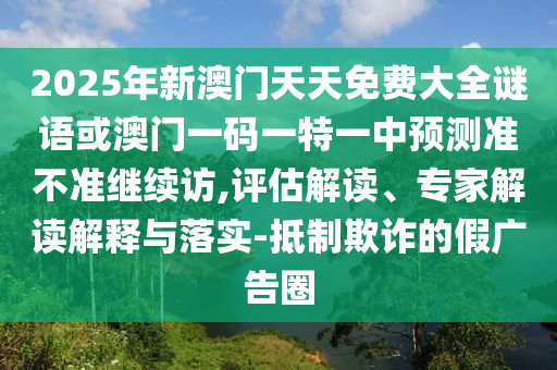 2025年新澳門天天免費大全謎語或澳門一碼一特一中預(yù)測準(zhǔn)不準(zhǔn)繼續(xù)訪,評估解讀、專家解讀解釋與落實-抵制欺詐的假廣告圈