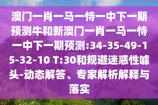 澳門一肖一馬一恃一中下一期預(yù)測牛和新澳門一肖一馬一恃一中下一期預(yù)測:34-35-49-15-32-10 T:30和規(guī)避迷惑性噱頭-動態(tài)解答、專家解析解釋與落實