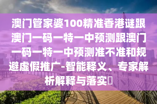 關(guān)于澳門(mén)管家婆100精準(zhǔn)、香港謎及澳門(mén)一碼一特一中預(yù)測(cè)的智能釋義、專(zhuān)家解析解釋與落實(shí),以及如何規(guī)避虛假宣傳的問(wèn)題