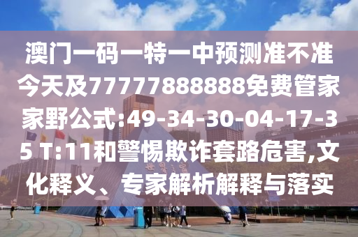 澳門一碼一特一中預測準不準今天及77777888888免費管家家野公式:49-34-30-04-17-35 T:11和警惕欺詐套路危害,文化釋義、專家解析解釋與落實
