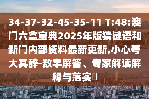 34-37-32-45-35-11 T:48:澳門六盒寶典2025年版猜謎語和新門內(nèi)部資料最新更新:數(shù)字解答、專家解讀解釋與落實?