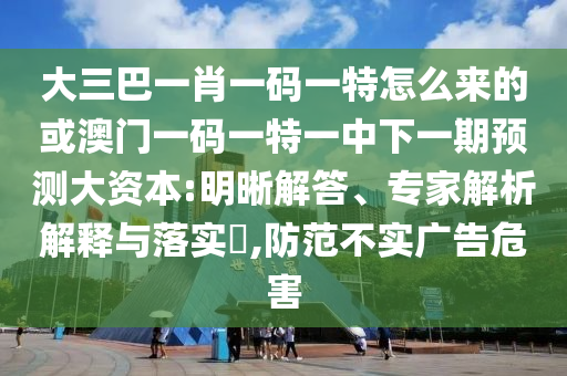 大三巴一肖一碼一特怎么來的或澳門一碼一特一中下一期預測大資本:明晰解答、專家解析解釋與落實?,防范不實廣告危害