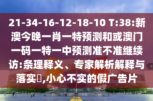 21-34-16-12-18-10 T:38:新澳今晚一肖一特預(yù)測(cè)和或澳門(mén)一碼一特一中預(yù)測(cè)準(zhǔn)不準(zhǔn)繼續(xù)訪:條理釋義、專家解析解釋與落實(shí)?,小心不實(shí)的假?gòu)V告片