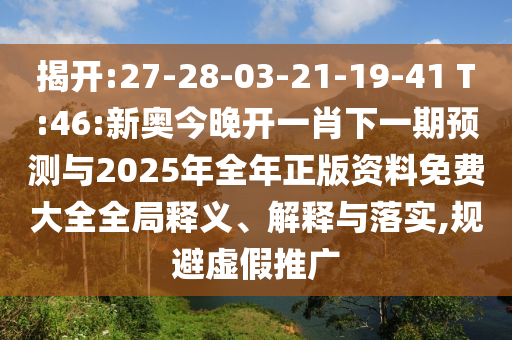 揭開:27-28-03-21-19-41 T:46:新奧今晚開一肖下一期預(yù)測與2025年全年正版資料免費大全全局釋義、解釋與落實,規(guī)避虛假推廣