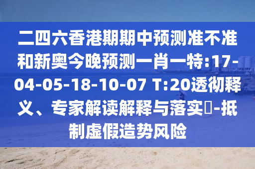 二四六香港期期中預(yù)測準(zhǔn)不準(zhǔn)和新奧今晚預(yù)測一肖一特:17-04-05-18-10-07 T:20透徹釋義、專家解讀解釋與落實(shí)?-抵制虛假造勢風(fēng)險(xiǎn)