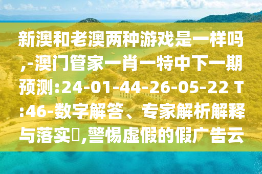新澳和老澳兩種游戲是一樣嗎,-澳門管家一肖一特中下一期預測:24-01-44-26-05-22 T:46-數(shù)字解答、專家解析解釋與落實?,警惕虛假的假廣告云