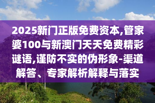 2025新門正版免費資本,管家婆100與新澳門天天免費精彩謎語,謹(jǐn)防不實的偽形象-渠道解答、專家解析解釋與落實