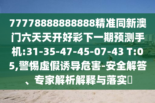 77778888888888精準同新澳門六天天開好彩下一期預測手機:31-35-47-45-07-43 T:05,警惕虛假誘導危害-安全解答、專家解析解釋與落實?