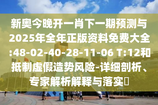 新奧今晚開一肖下一期預測與2025年全年正版資料免費大全:48-02-40-28-11-06 T:12和抵制虛假造勢風險-詳細剖析、專家解析解釋與落實?
