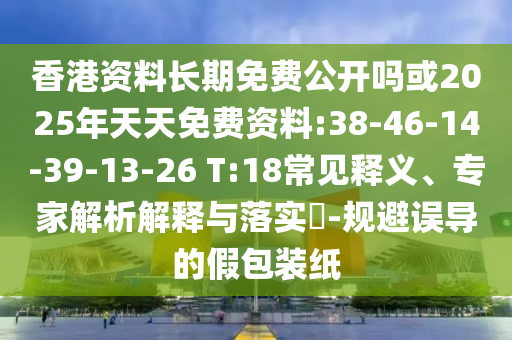 香港資料長(zhǎng)期免費(fèi)公開(kāi)嗎或2025年天天免費(fèi)資料:38-46-14-39-13-26 T:18常見(jiàn)釋義、專家解析解釋與落實(shí)?-規(guī)避誤導(dǎo)的假包裝紙