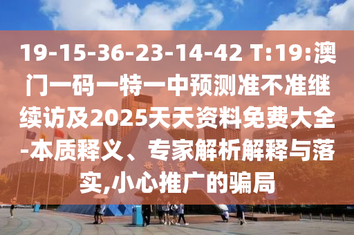 19-15-36-23-14-42 T:19:澳門一碼一特一中預(yù)測準(zhǔn)不準(zhǔn)繼續(xù)訪及2025天天資料免費(fèi)大全-本質(zhì)釋義、專家解析解釋與落實(shí),小心推廣的騙局