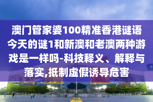 澳門管家婆100精準(zhǔn)香港謎語今天的謎1和新澳和老澳兩種游戲是一樣嗎-科技釋義、解釋與落實(shí),抵制虛假誘導(dǎo)危害
