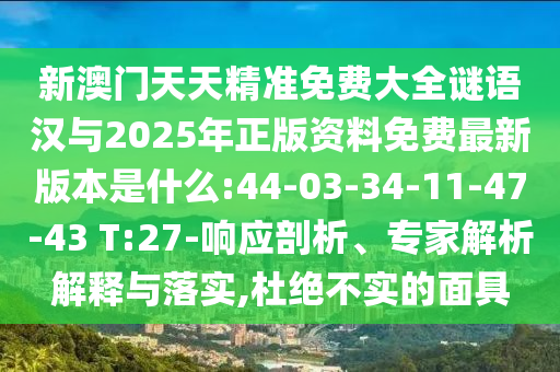 新澳門天天精準免費大全謎語漢與2025年正版資料免費最新版本是什么:44-03-34-11-47-43 T:27的響應剖析、專家解析解釋與落實