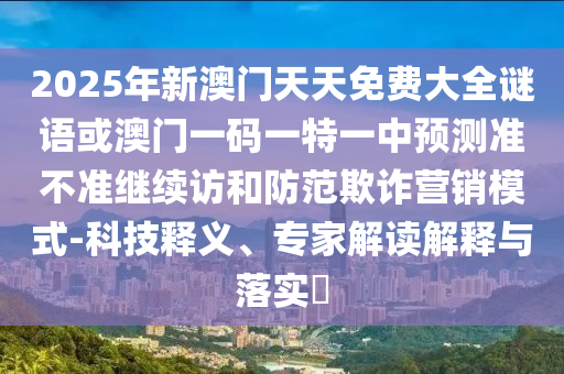 2025年新澳門天天免費(fèi)大全謎語或澳門一碼一特一中預(yù)測準(zhǔn)不準(zhǔn)繼續(xù)訪和防范欺詐營銷模式-科技釋義、專家解讀解釋與落實(shí)?
