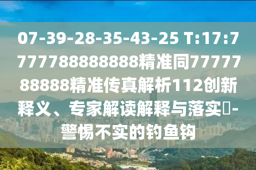 關(guān)于關(guān)鍵詞“07-39-28-35-43-25 T:17:7777788888888精準(zhǔn)同7777788888精準(zhǔn)傳真解析112創(chuàng)新釋義、專家解讀解釋與落實(shí)警惕不實(shí)的釣魚鉤”的全面釋義、專家解讀與落實(shí)、以及警惕虛假宣傳的解析如下: